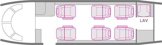 The CJ2+ comes with six adjustable deep-cushioned reclining seats that track inwards to maximize seating space, as well as a belted seat in the lavatory for an additional passenger if needed on a short trip.