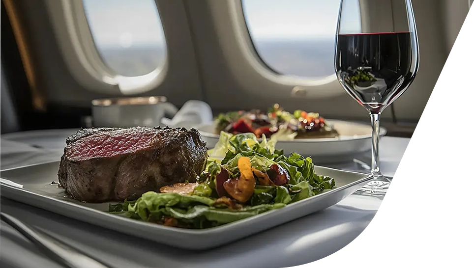 Exceptional in-flight dining elevates the private air charter experience, and at Bravo Air, every order is meticulously planned and prepared with the highest quality ingredients by top culinary partners. Whether you prefer gourmet dining, health-conscious meals, or light bites for those shorter flights, our catering team works closely with you to design a menu that suits your tastes.